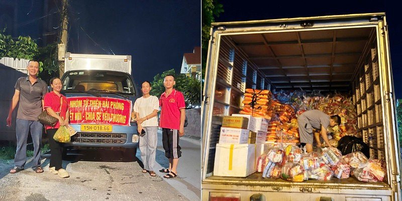 Các nhóm thiện nguyện gửi quà cứu trợ người dân chịu ảnh hưởng của mưa lũ tại Thái Nguyên – Ảnh: VŨ TUẤN